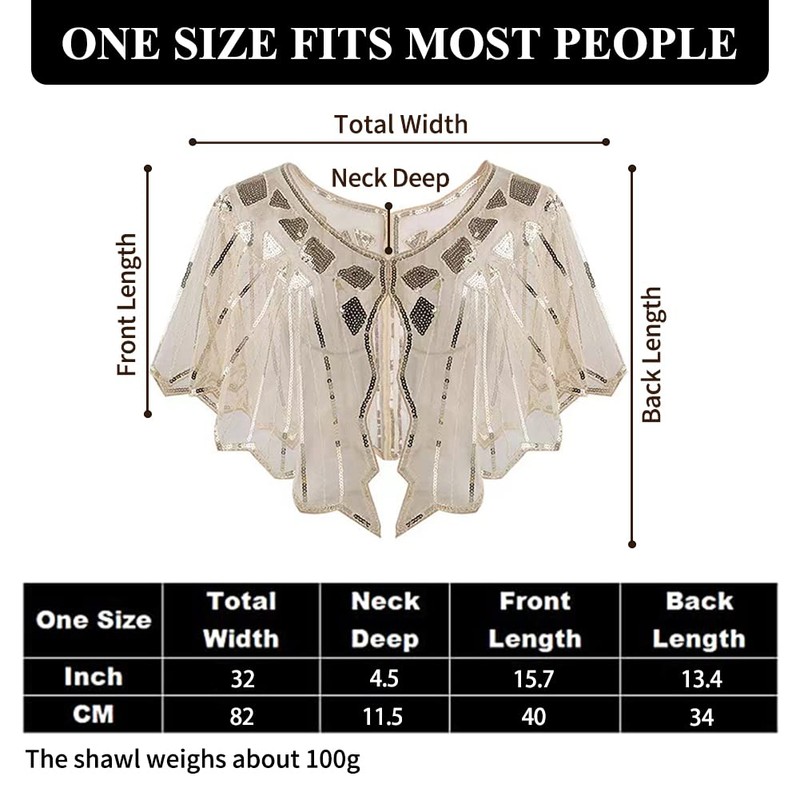 • EXQUISITE WORKMANSHIP: Bacophy evening gown shawl features a beautiful vintage pattern with understated luxury beaded sequins and elegant zigzag hem, perfectly restoring the classic style of the 20's. Wear it to show your most dignified and beautiful side.