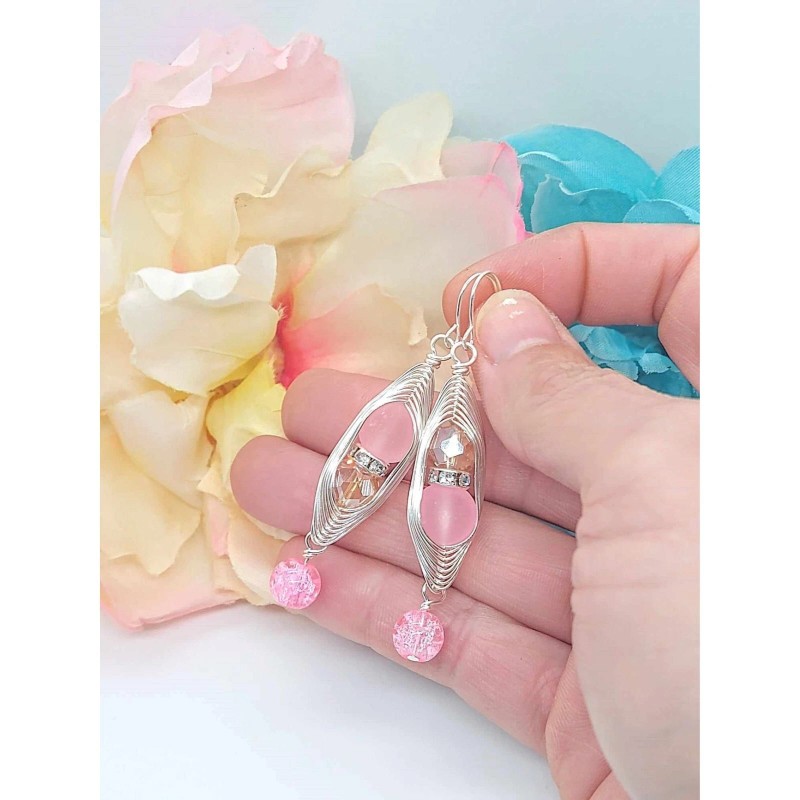 Bad Apple Designs Green Sea Glass Artisan Wire Braided Silver Earrings-Ladie