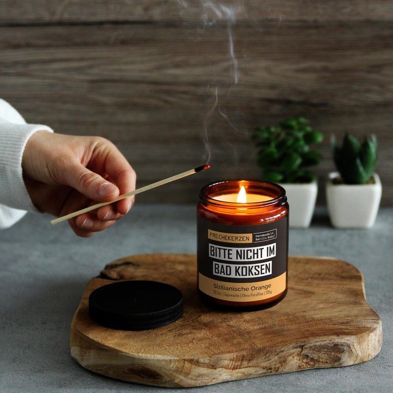 - KLARE ANSAGE: Die perfekte Deko Kerze, um dein Badezimmer aufzupeppen. Mit dieser frechen Kerze kannst du deinen Besuchern, ob beste Freundin, Mama, Kollegin, deinem besten Freund, Papa oder Kollegen, ein großes Lächeln ins Gesicht zaubern.
