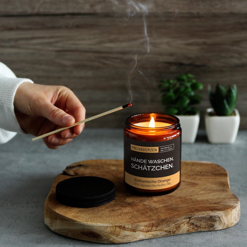 Unsere Kerzen sind vegan und bestehen aus natürlichem Sojawachs und einem Baumwolldocht.