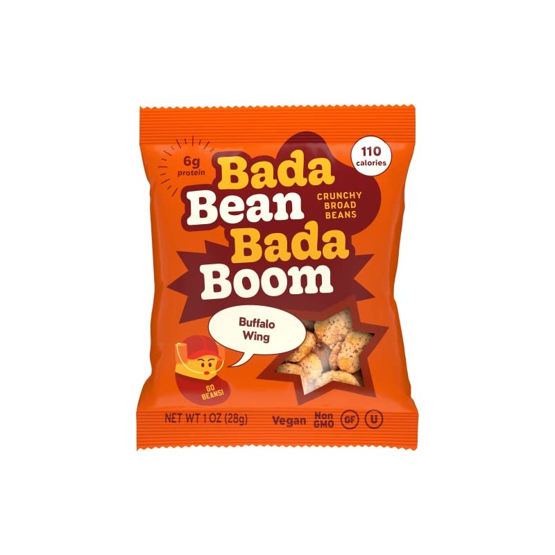 Enlightened Bada Bean Bada Boom - Plant-Based Protein, Gluten Free, Vegan, Crunchy Roasted Broad (Fava) Bean Snacks, 110 Calories per Serving, Buffalo Wing, 1 Ounce (Pack of 24)