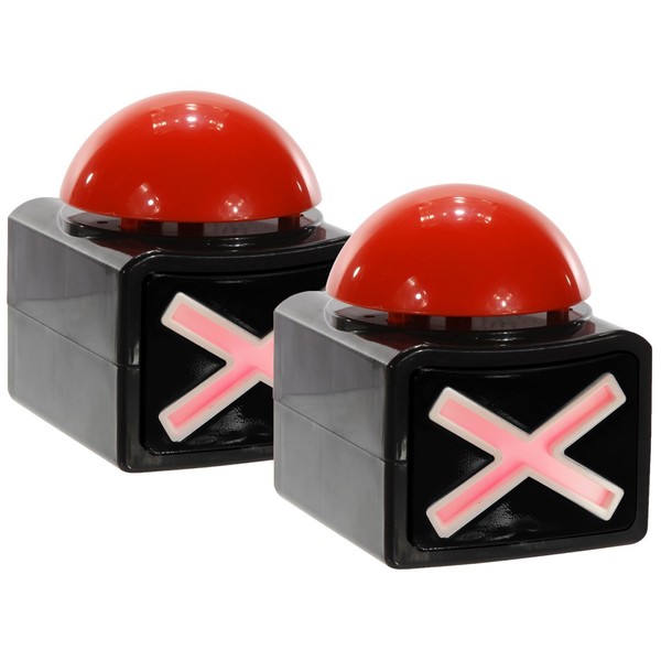 - Ideal for delivery: you will receive a practical set of 2 buzzers so you can have twice the fun with your friends or family. Get ready for exciting quiz rounds and fun party games. The alarm button is also ideal as a souvenir for a nice game evening or gift for your loved ones.