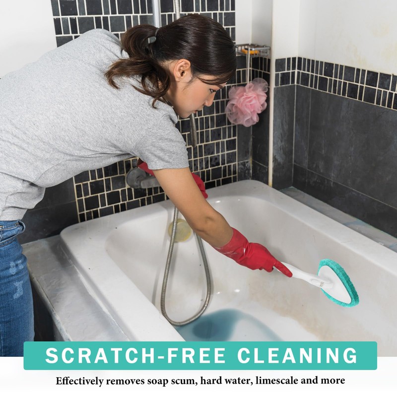 • Easy to Use: the cleaning brush pad removes soap scum, hard water, limescale and other shower dirt without scratching; Easy to use: just use with water or your favorite detergent