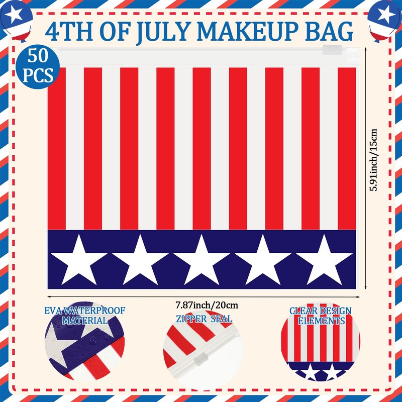 - Package Includes: you will receive a total of 50 Independence Day themed bulk makeup bags, sufficient quantity to meet your various needs for daily use and Independence Day party, patriotic party gifts