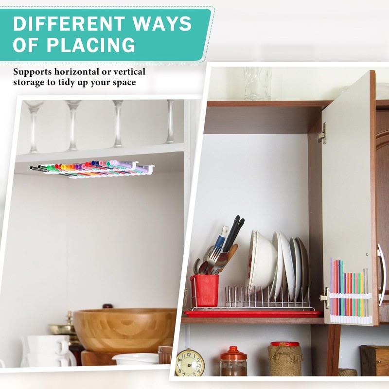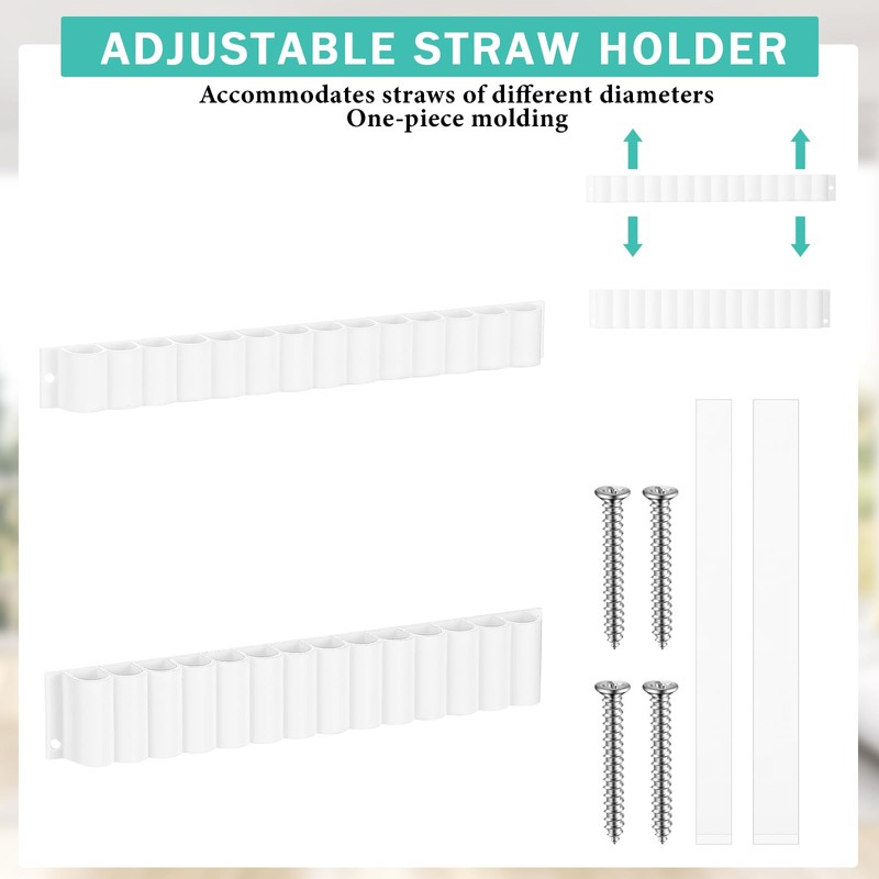 - Package Contents: you will receive 2 straw holders in different sizes, equipped with screws and double-sided tape, you can choose the installation method that suits you, easily install the straw rack on kitchen cabinets and cabinet doors