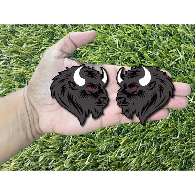 Badge Addictz Bison Buffalo Emblem Badges Red Eye White Horns Matte/Black Racing Performance