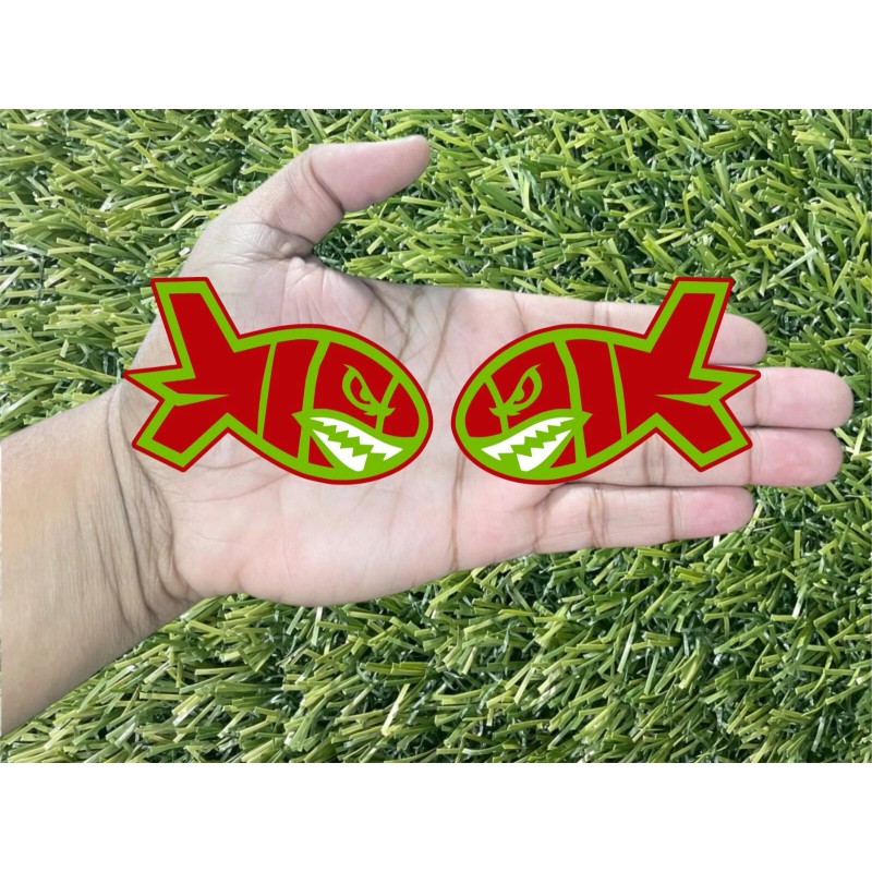 Red Eye Flying Tiger Shark With White Teeth Lime Green On Red Emblem Badges
