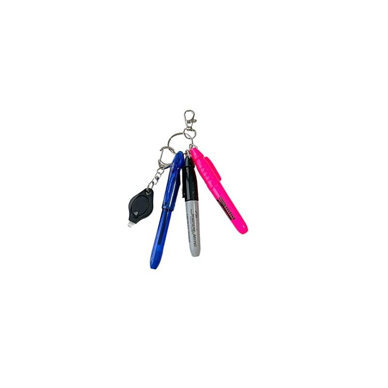 Badge Reel Accessory BLUE pen, PINK Highlighter/Mini Pen, Sharpie, Highlighter, LED Light - Attach to Your Badge Holder, Backpack, etc