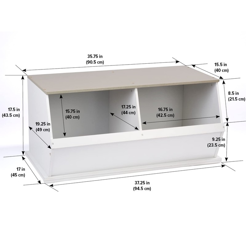 - GENEROUSLY SIZED: The two bin storage cubby measures 37.25 inches L x 19.25 inches W x 17.25 inches H. Each separate bin measures 16.75 inches W x 17.25 inches D x 15.75 inches H.