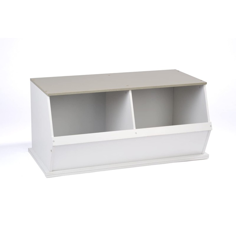 Badger Basket Two Bin Stackable Toy Storage Cubby Organizer - White/Gray Woodgrain