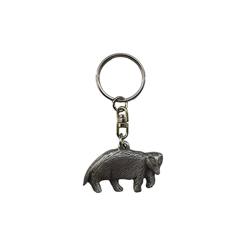 A pewter keyring in the shape of a Badger, supplied on a metal double ring and chain.