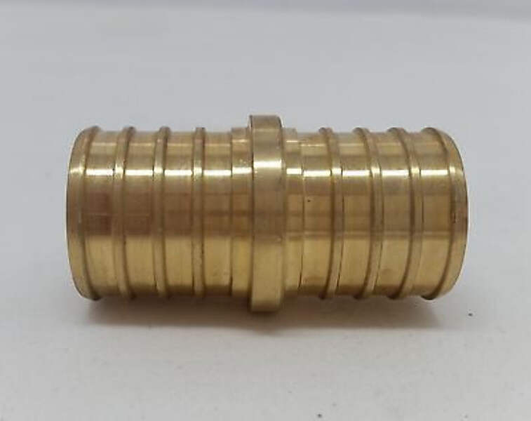 2" Crimp Coupling (Bag of 4) We have 100's of this item in stock and will always ship your order the same business day we receive the order if placed before 2PM Central time. * Lead Free Brass * Durable and Reliable * Compatible with Pex Pipe * Fittings work with copper crimp rings or stainless steel clamps Pex Fittings: All of our fittings are lead free, and made to meet ASTM standards. Also it good to remember too that not all plastic tubing is Pex, there for Pex fittings will not work with most other tubing. When it comes to the most cost effective, long term fittings to use with your Pex tubing crimp rings are the best. Cinch rings will work, but they are not as good and are more expensive. Pipe clamps are another option to use, but has some trade-offs. Benefit is a quick and easy fix, but the tradeoff is a little more expensive, and may leak down the road. The clamps will work if you have a leaky pipe and need a “quick fix”. These fittings can be used with any 2" U.S. Standard Pex Tubing for making a Pex to MPT Fitting connection. Can be used with any clamp or crimp ring connection system. We carry 2" Stainless Steel Pex Pipe Clamps and 2" Black Copper Crimp Rings for securing these fittings. About PEX Crimp Rings: PEX crimping system is the most reliable and most widely used methods of installing PEX. Crimp rings ensure full 360˚ Compression of the pipe over the barbs of the fitting without the risk of expansion or corrosion. Size of the PEX crimp ring corresponds to the PEX pipe size, namely, 1/2" crimp rings for 1/2" PEX, 3/4" for 3/4" and so on. PEX crimp rings are installed by positioning it over the pipe and fittings and compressing it with the help of a PEX crimp (crimping) tool. Frequently asked questions about this product: Q: How do I determine the right crimp ring size for my PEX tubing sizes? A: The specified size of the crimp ring must always match the size of the PEX pipe it's used with. If using a 3/4" pipe, you'll need the 3/4" rings, 1" rings for 1" pipe, etc. Q: What if the crimp connection was done improperly or unevenly? A: A decrimping tool can be used to remove the crimp rings, or you can use a small grinding tool such as a Dremel to remove the bad crimp ring. Q: How far away should I position the crimp ring from end of the pipe? A: Make sure that the fitting is fully inserted in the tubing. Recommended distance between the end of the pipe (or shoulder of the fitting) and the edge of the ring is between 1/8" and 1/4". Q: Are these crimp rings compatible with other brand tools, fittings and tubing? A: Yes, these crimp rings are universal and will work both with PEX crimp tools, crimp fitting and tubing sold here at Badger Pipe, and the same type components of different brands purchased elsewhere. Q: Crimp Rings vs. PEX Clamps - which is better? A: Both systems are widely used and accepted by code. The Crimp system, is by far the most cost effective, most dependable, and easiest system to use. This system has many years of proven performance and works well for both beginners and professionals. PEX clamp system is better for a quick temporary fix but typically does not hold up to long term use very well, and they are more expensive than Crimp rings.