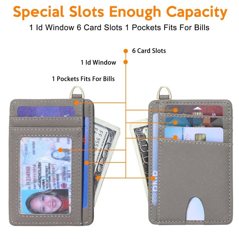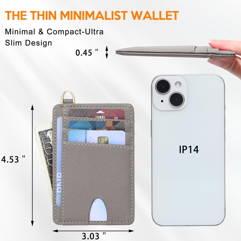 - 【Safe & Protected Card Holder】This thin card wallet is equipped with advanced RFID blocking technology. Protect your valuable information like ID, credit cards from unauthorized scans. Allows you to bring it along in your handbag, backpack, front pocket or purse.