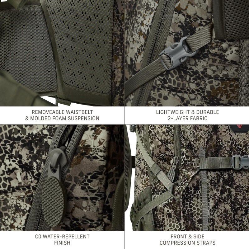 - Multiple Colorways: Available in three colorways: Mud, Approach GT (Ground & Timber), and Approach OG (Original Green), offering options to suit different environments and personal preferences, ideal for those looking for a camo backpack