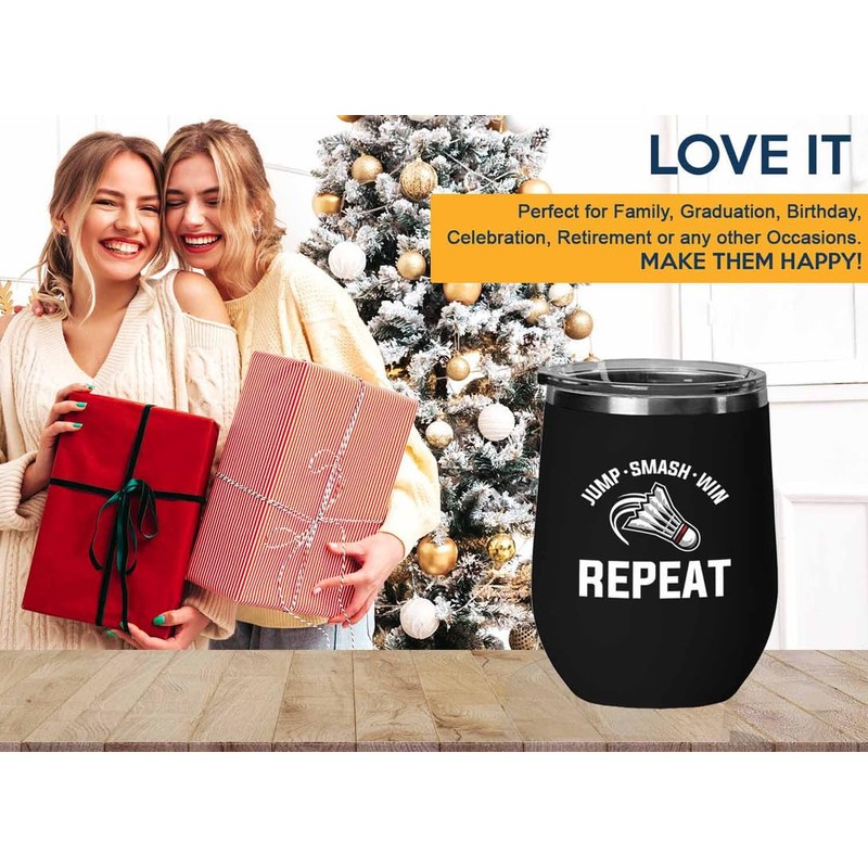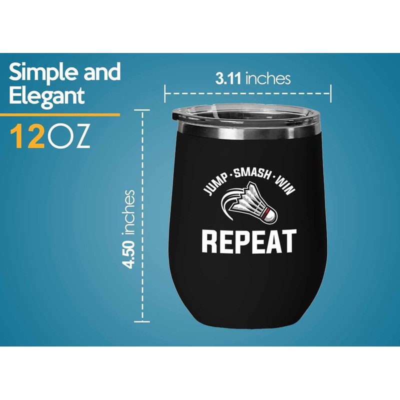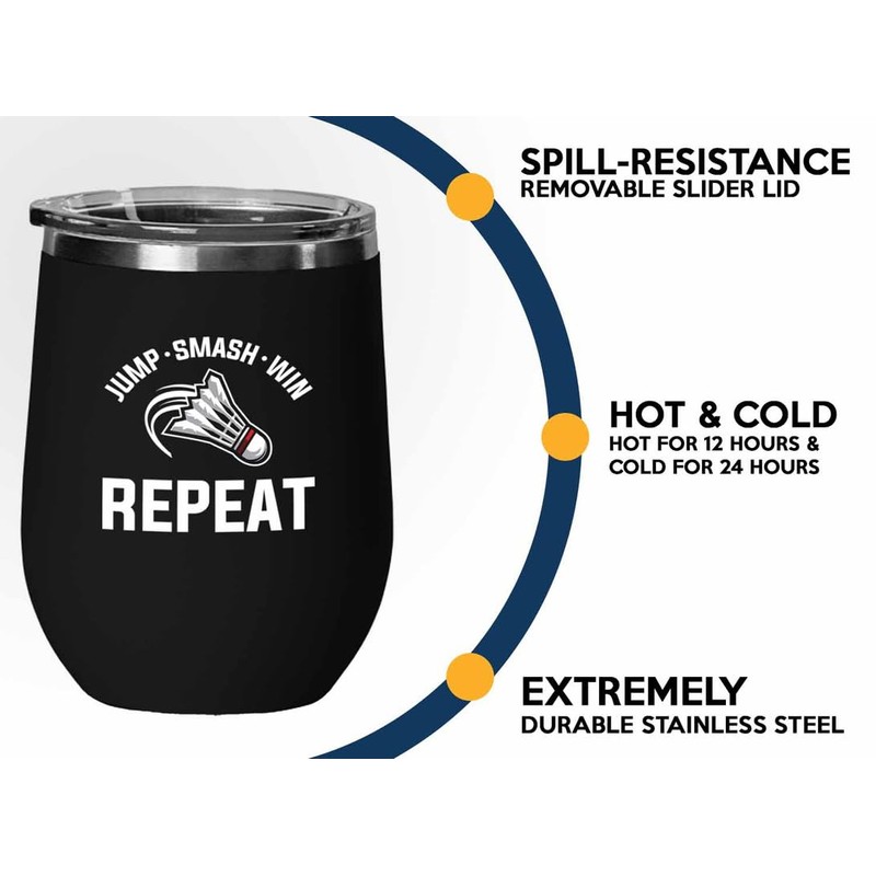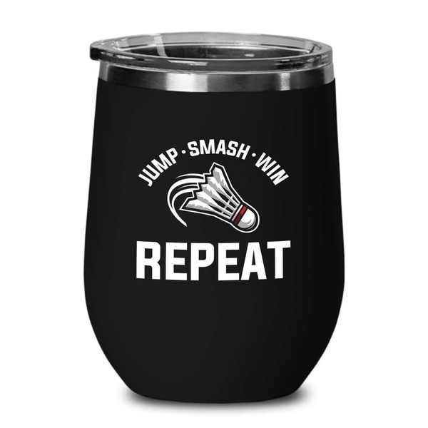 Badminton Black Edition Wine Tumbler 12oz - Jump smash win - Badminton Player Racket Sport Theme for Athlete Net Birdie Badmintonist Court Game