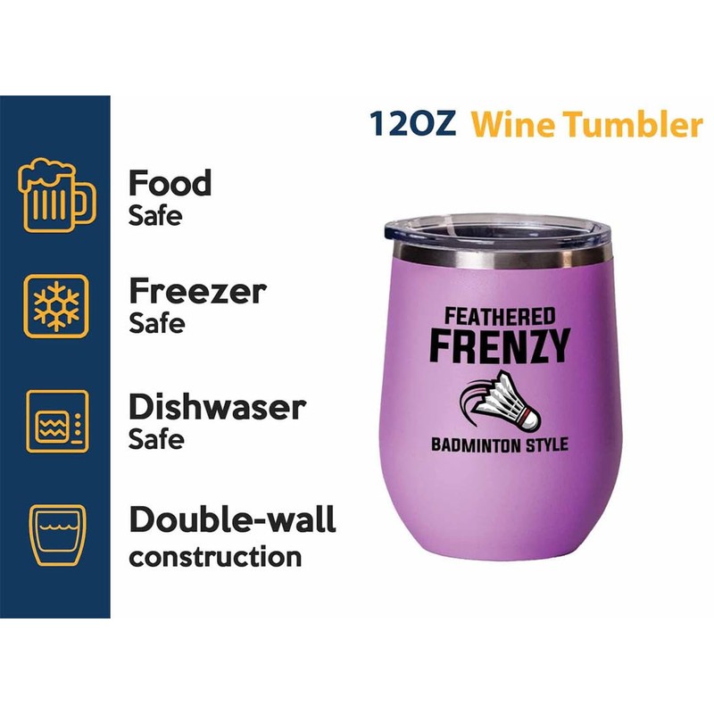 Badminton Pink Edition Wine Tumbler 12oz - Feathered frenzy badminton - Badminton Player Racket Sport Theme for Athlete Net Birdie Badmintonist Court Game