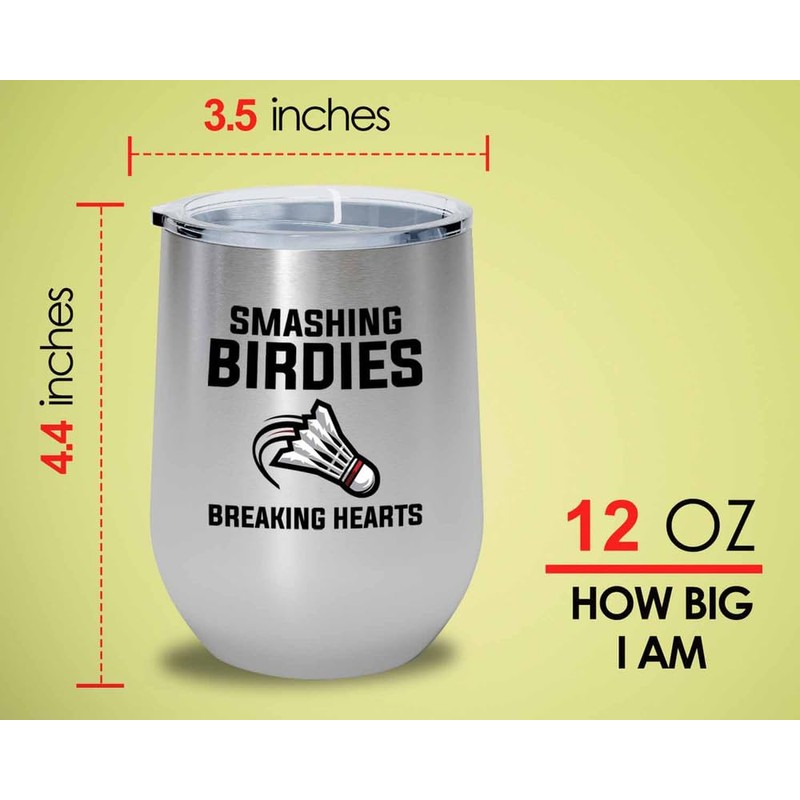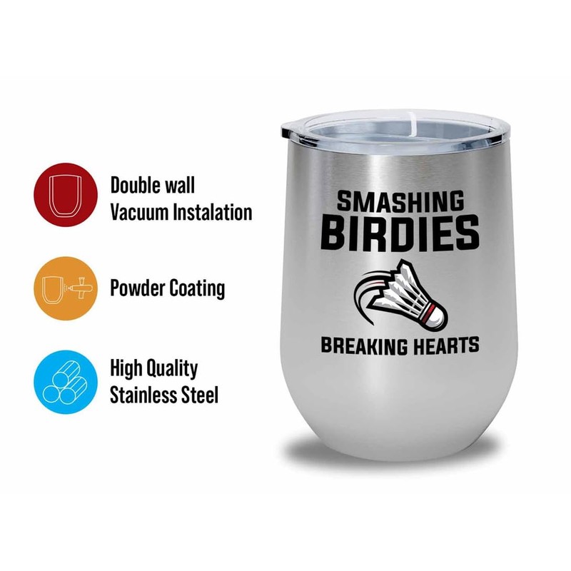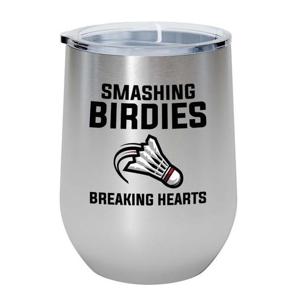 Badminton Silver Edition Wine Tumbler 12oz - Smashing birdies breaking - Badminton Player Racket Sport Theme for Athlete Net Birdie Badmintonist Court Game