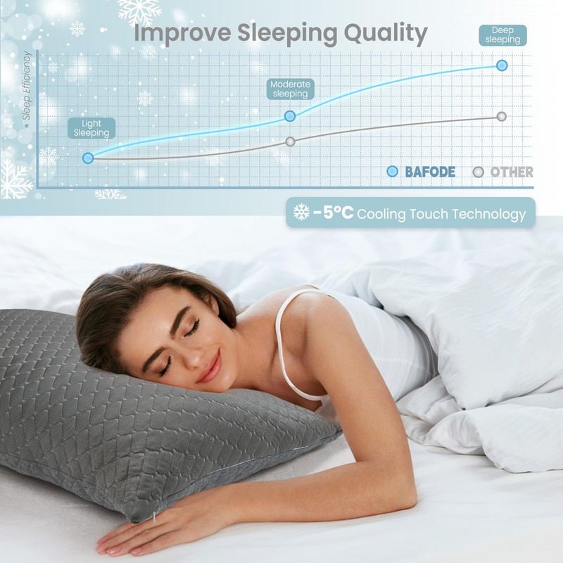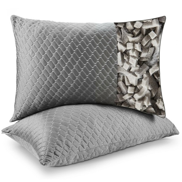 Bafode Memory Foam Pillows Standard Size Set of 2, Shredded Memory Foam Pillows, Cooling Pillow for Sleeping, Adjustable Bed Pillows for Side, Back and Stomach Sleepers