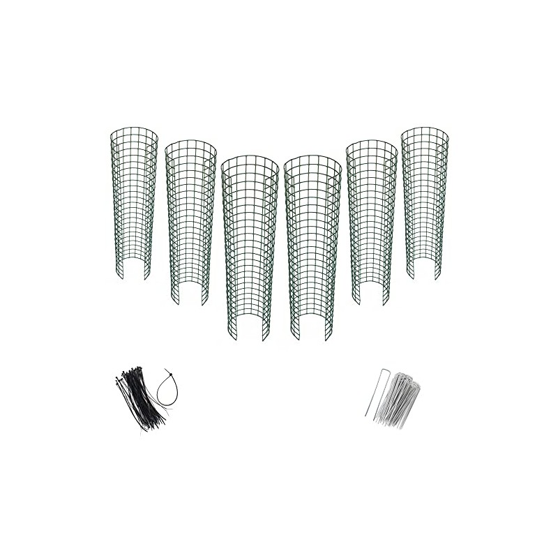 - Includes 6 protectors, 18 galvanized garden staples, and 50 UV resistant zip ties