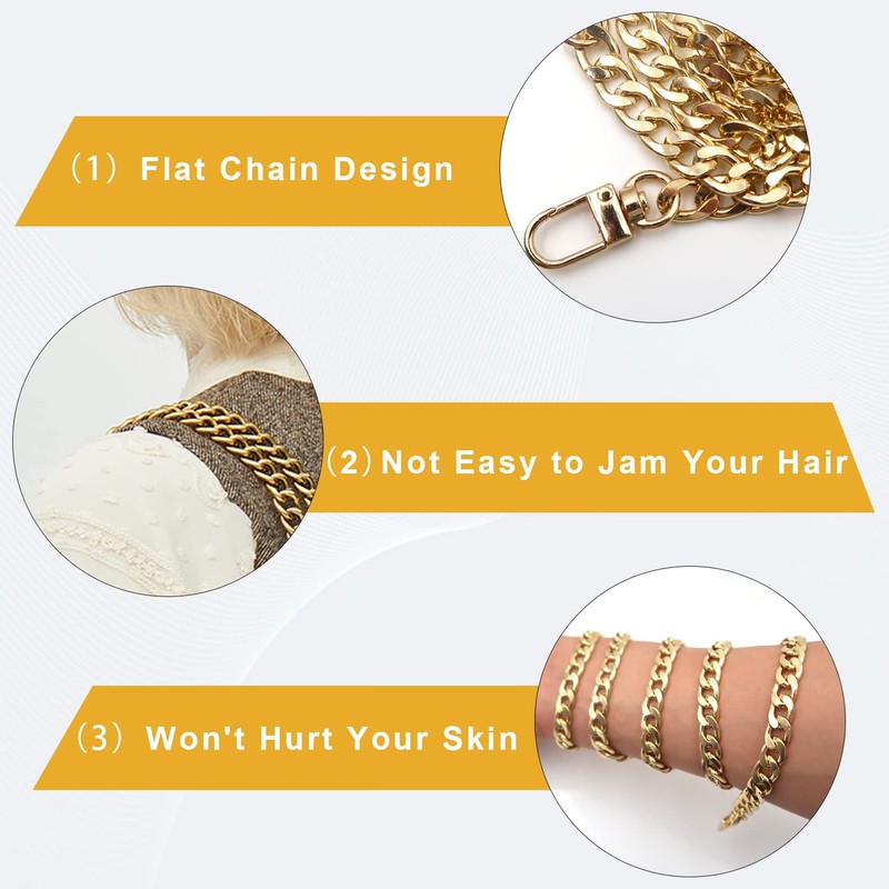 - Comfortable and functional: the metal buckles make them easy to connect, easy to reach, not easy to break, can help reduce shoulder pressure and do not hurt your skin. And the wide holes prevent your hair from being jammed by the chains.