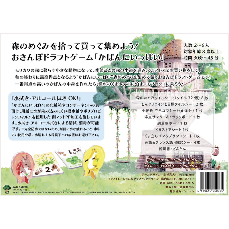 • Story: Be a small animal in the Morikawa forest and collect the forest megumi tiles in your bag. Pick up tiles in order like a road, or shop at the Bear Store, and make the contents of your score bag and win!