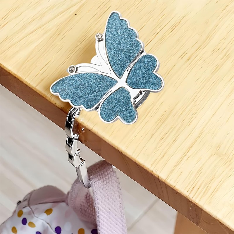 Bag Holder for Table, Handbag Holder for Table, Handbag Hanger, Foldable Non-Slip Bag Hook, Butterfly Shape, Foldable Bag Hook, for Desk, Restaurant (Blue)