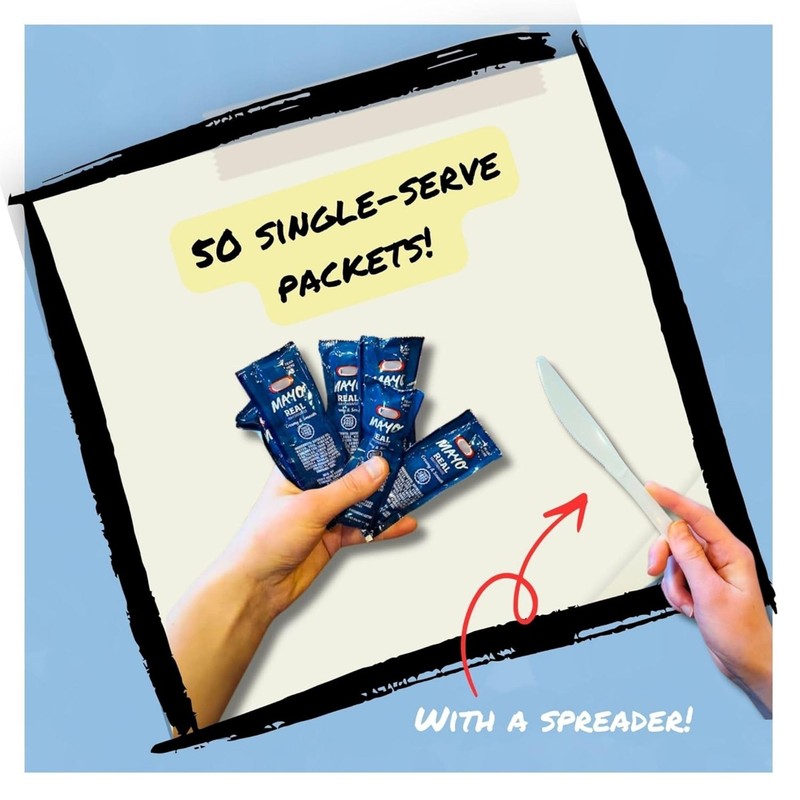 Gift Set: Mayo Packets (12g) – 50 Count with Spreader in Food-Safe Resealable Bag by CMC Products (approximately 50 packets)