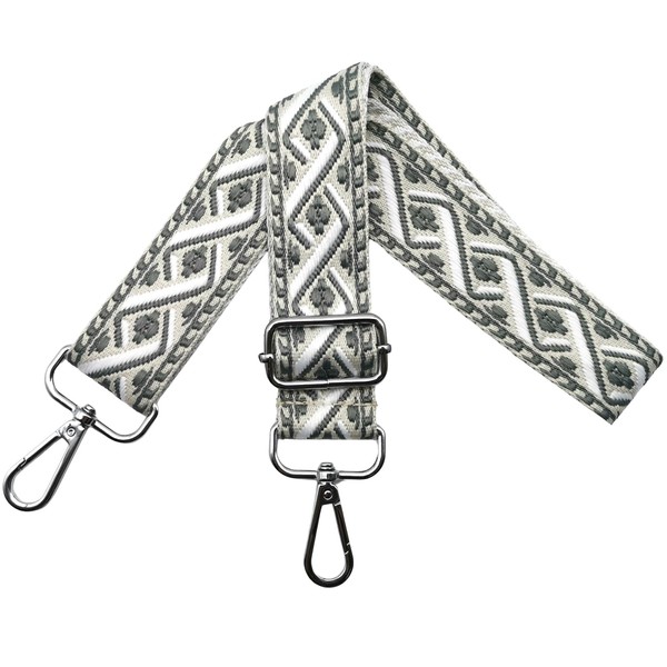 Bag Straps for Changing Shoulder Strap for Bag, Adjustable Bag Strap Wide 3.8 cm with Silver Carabiner Shoulder Strap, Bag Strap, Shoulder Strap, Carry Strap for Handbags, Colourful, R, grey / white