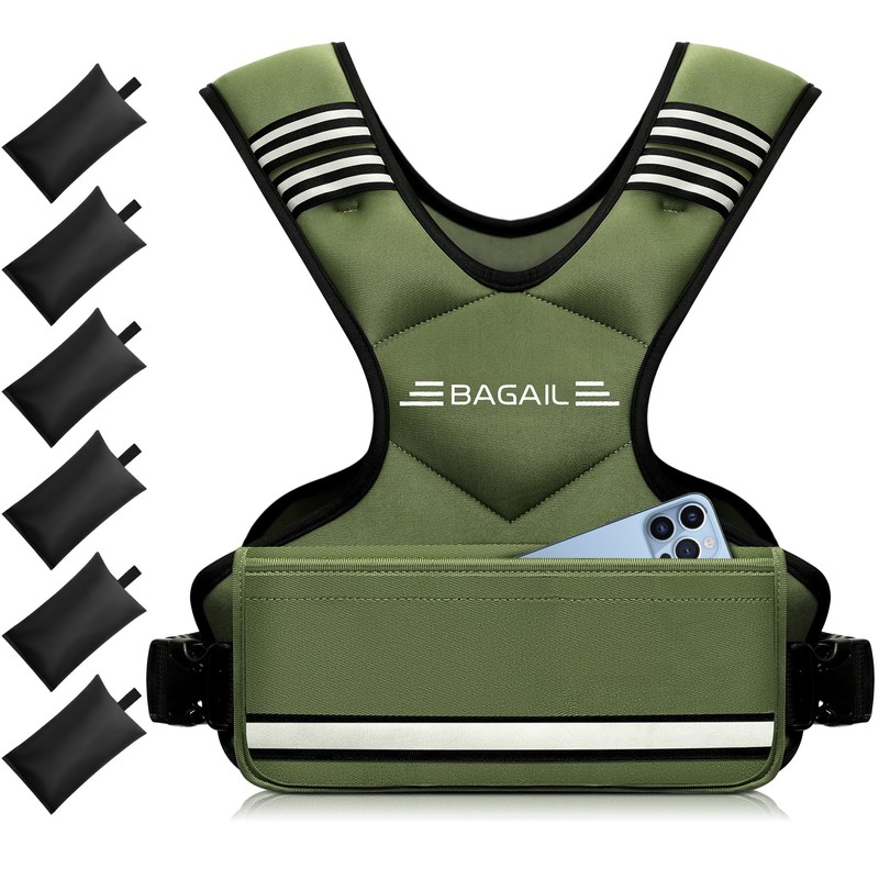 BAGAIL Adjustable Weighted Vest, 4-10lb/12-18lb/20-32lb Rucking Vest for Women & Men with 6 Weights & Large Pocket, Weight Vest for Home Workouts, Running, Walking and Strength Training - Green