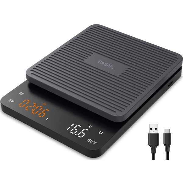 - 【ACCURATE & RESPONSIVE】 With the latest weighing technology and high-precision sensor, Bagail electronic kitchen scale can stabilize faster during brewing and respond sensitively to every 0.1g increase, and provide you with accurate measurement from 0.3g to 3000g.