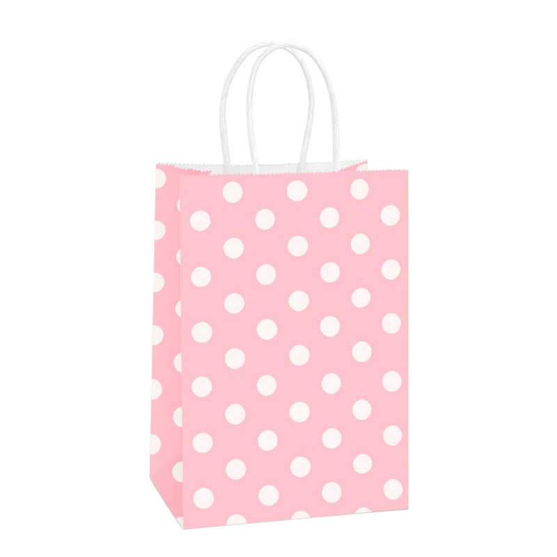 - Premium Kraft Paper Bags: Holding up to 4lbs, these sturdy pink dot party favor bags are made of 110g basis weight kraft paper and have well constructed paper twist handles. Glued well and the flat solid bottom making it stand easily