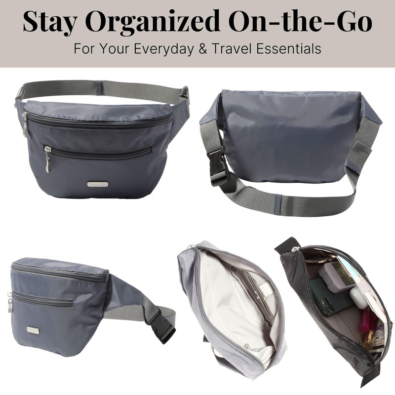 Baggallini Essential Belt Bag - 19x6" Crossbody Fanny Pack Waist Pack w/RFID & Adjustable Strap