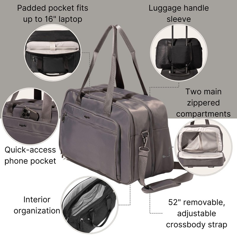 Baggallini Getaway Split Case Duffel - Lightweight 11x17 Inch Overnight Travel Weekender Bag