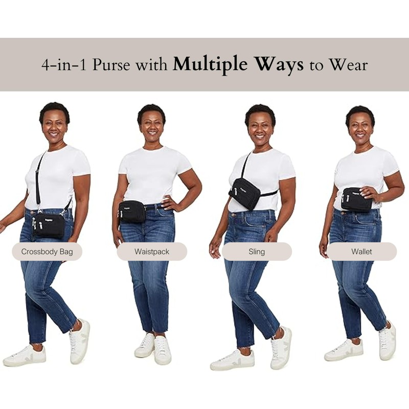 - MULTI FUNCTIONAL: Thanks to a removable 52” adjustable strap, Baggallini’s Triple Zip bag functions as a crossbody, wallet bag, or waist pack. It’s great for travel as well as everyday use!