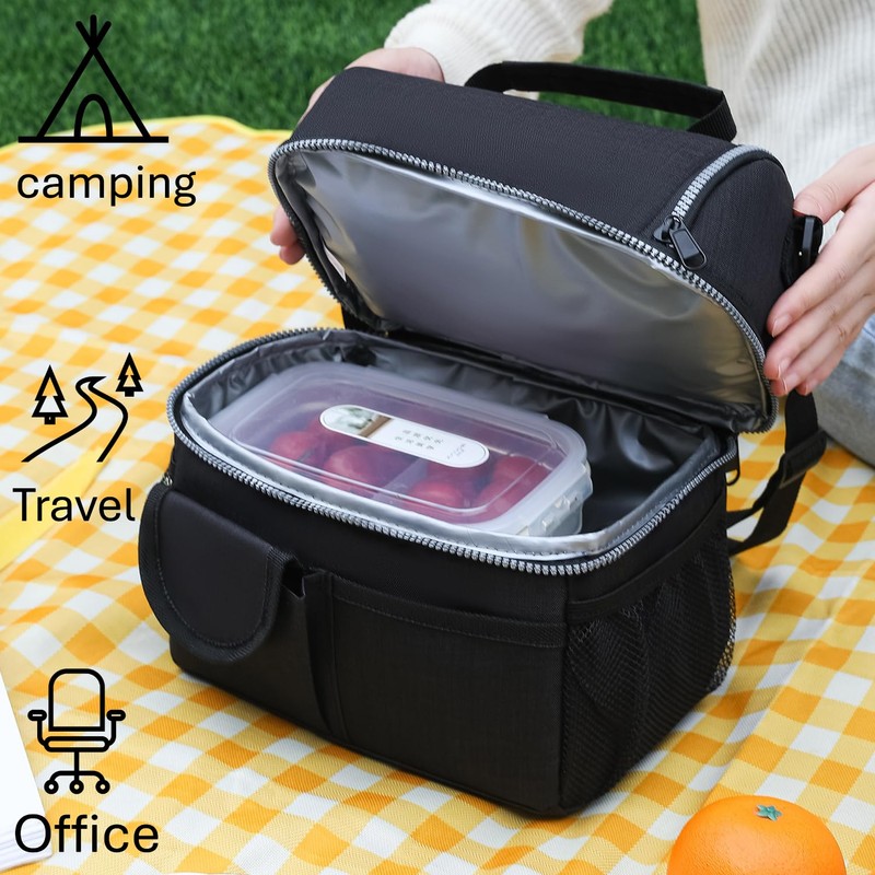 ✔Built with 600D Oxford fabric, its water-resistant exterior and leakproof PEVA lining keep contents secure, while premium insulation keeps food hot or cold for up to 5 hours. The dual decker compartments allow you to store hot meals in one and cold beverages in the other—perfect for all-day meal prep.
