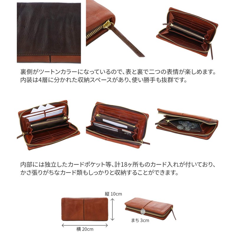 両面のカラーも異なるので飽きることなく長く付き合える長財布です。