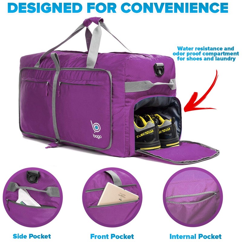 - RELIABILITY: Duffle bag for men and women. An overnight bags for men or travel duffle bags for women. Unfold at the airport to carry your gifts/souvenirs, laundry, or to transfer items from a damaged suitcase to avoid excess baggage charges.