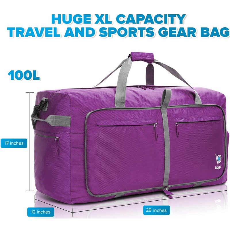 - EXTRA LARGE DUFFLE BAG FOR TRAVEL: It extends to 19 x 11 x 31 inch with 120L capacity, weighs 1.9 lbs but folds compact to 13 x 5 x 7 inches (33 x 12.7 x 17.7 cm ). A Traveling Bag for sports gear, "Just In Case" bag, camping duffle bag, weekender bag, or even a duffle bag for hospital maternity.