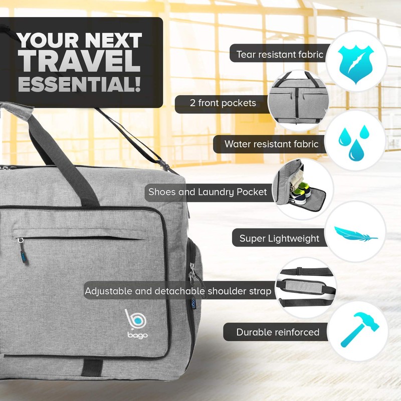 - RELIABILITY: Ideal as Gym Bag or Sports bag or football duffle bag for hauling sports gears or even for storage. Unfold at the airport to use as carry on to avoid excess baggage charges. A reliable carry on travel bags for women and mens.