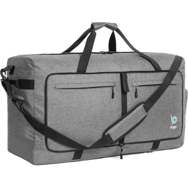 Bago Large Foldable Duffel Bags for Traveling Women & Men - 100L Packable Duffle Bag for Travel with Shoe Compartment - Water Repellant, Heavy Duty, Lightweight Folding & Collapsible (SnowGray)
