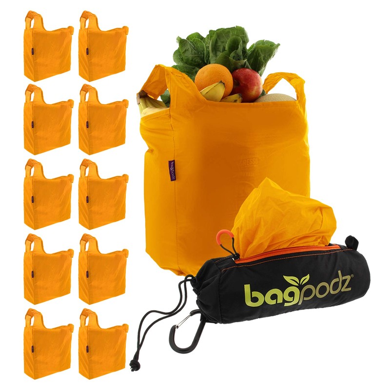 • REUSABLE BAGS MADE EASY – BagPodz is a portable pod of reusable grocery bags that conveniently clips to your cart. It's the ultimate eco-friendly solution that ends the need for plastic bags, as well as improving your shopping experience. Includes 10 bags