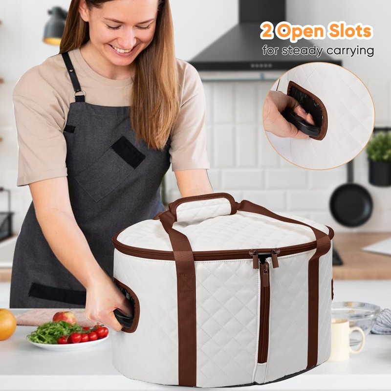 BAGSPRITE Slow Cooker Carrying Case Compatible with 6-8 Quart Crockpot Carrier for Hot Food and Hamlton Beach Slow Cooker Tote with Lid Fastener for Crock-pot Dust Cover Applicances