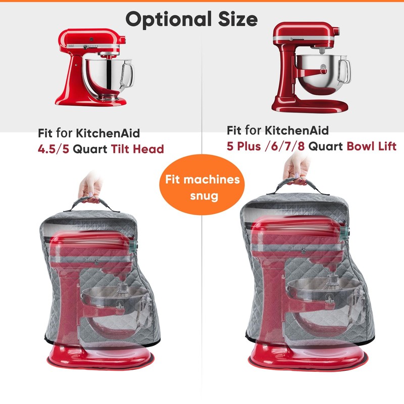 - [ Compatibility ] -Comes in 2 sizes and various colors. The small one is compatible with KitchenAid 5/4.5 QUART TILT-HEAD mixers, and the large size is compatible with KitchenAid 6/7/8 quart Bowl lift models.