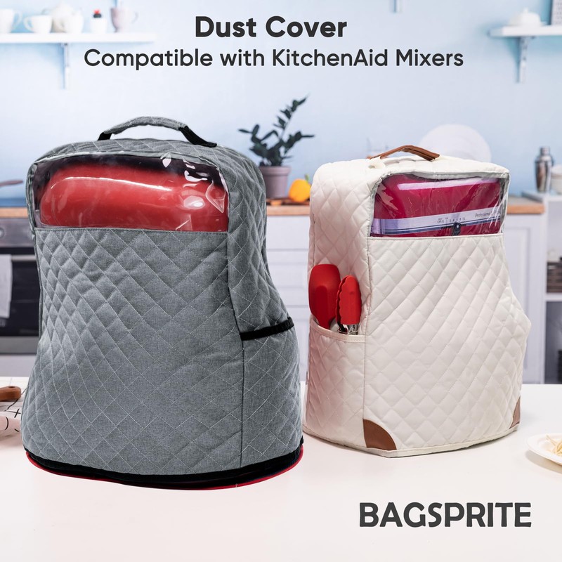 BAGSPRITE Stand Mixer Cover with Appliance Sliders Compatible with KitchenAid Mixer 4.5/5 Quart with Pockets for Kitchen Aid Accessories and Attachments