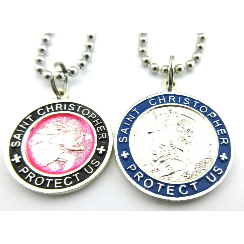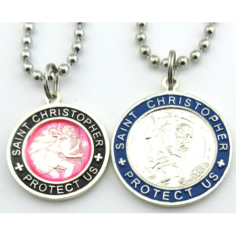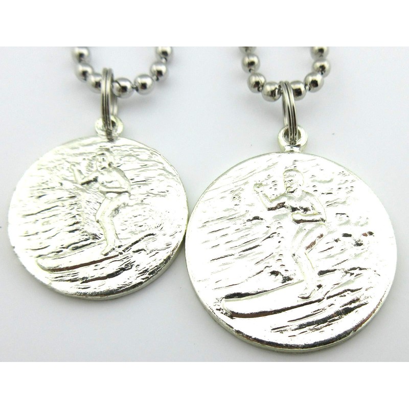 Baha Billy's St Christopher 2 Pc Set Surf Medal Protector of Travel Necklace fu-bk Small sv-nv Large