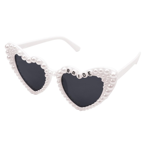 - Bride Sunglasses: For the bride who wants to make a statement on her big day, our white pearl "BRIDE" heart-shaped sunglasses are an absolute must-have. These sunglasses are a masterpiece of bridal elegance. The heart shape is a timeless symbol of love, and when combined with the delicate white pearls and the prominent "BRIDE" lettering, it creates a look that is both charming and sophisticated