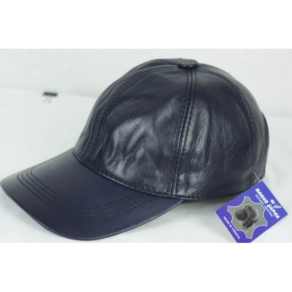 Bahar NAVY 100% GENUINE LAMBSKIN LEATHER Baseball Cap Hat Biker Visor Adjustable NWT