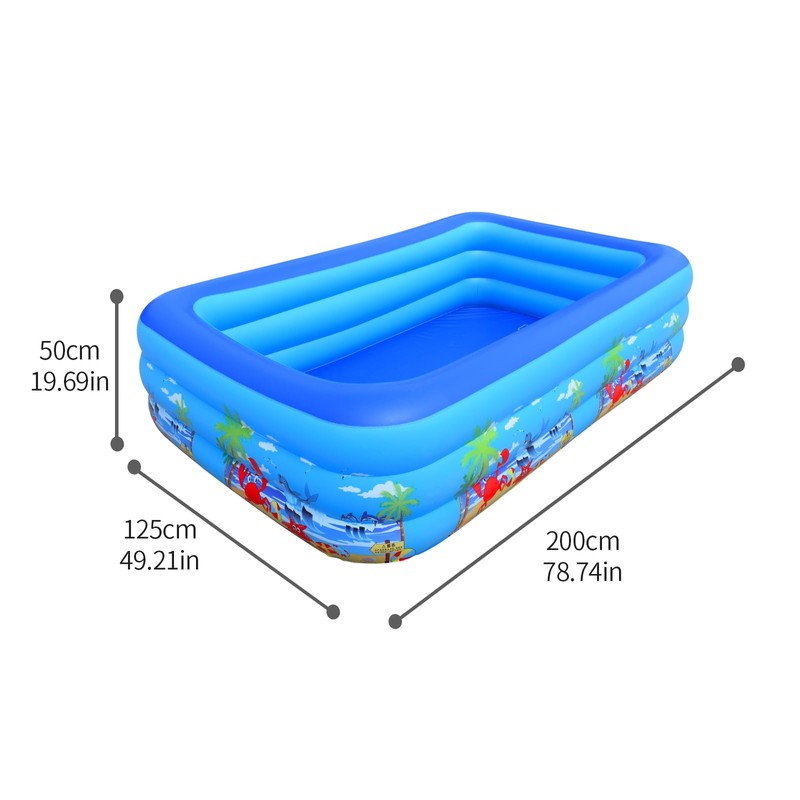 - 【Summer Fun for Kids】The size of the kiddie pool is 78.8".The inflatable pool for kids is made of safe Vinyl material and is durable.