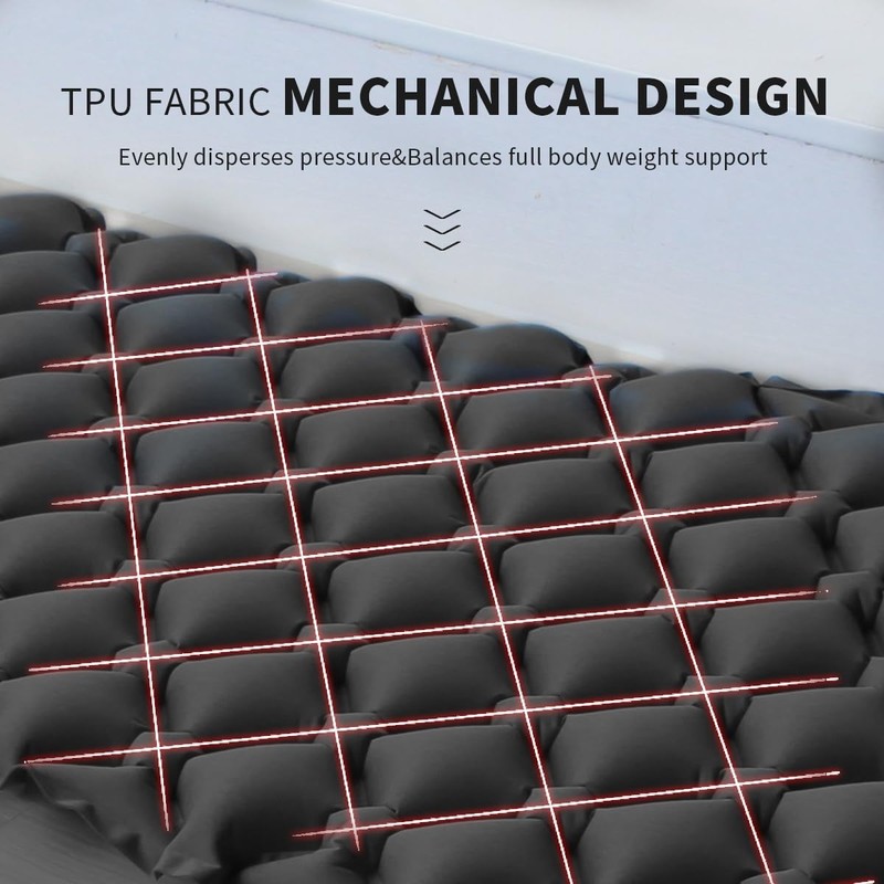 - 【Stable Hexagon Design 】Inflatable bed for camping with hexagonal design, tested by body mapping technology. Any sleeping position is comfortable, allowing the body to rest.