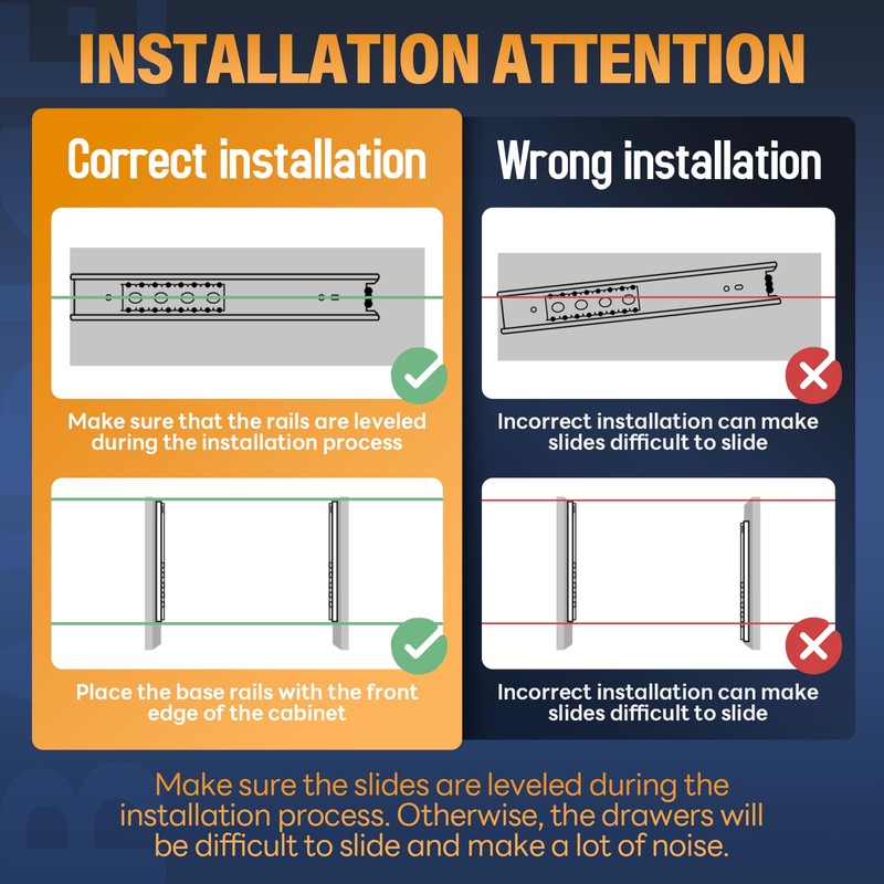 - 【Full Extension Slides, Double Anti-rust】Full extension heavy duty drawer slides support access to the whole space, and the drawers can be pulled out completely for easy storage of items. The surface of the slide rail is treated with a galvanized blue sealing process, which isolates the slide rail from direct contact with air and water, and increases oxidation resistance and corrosion resistance.